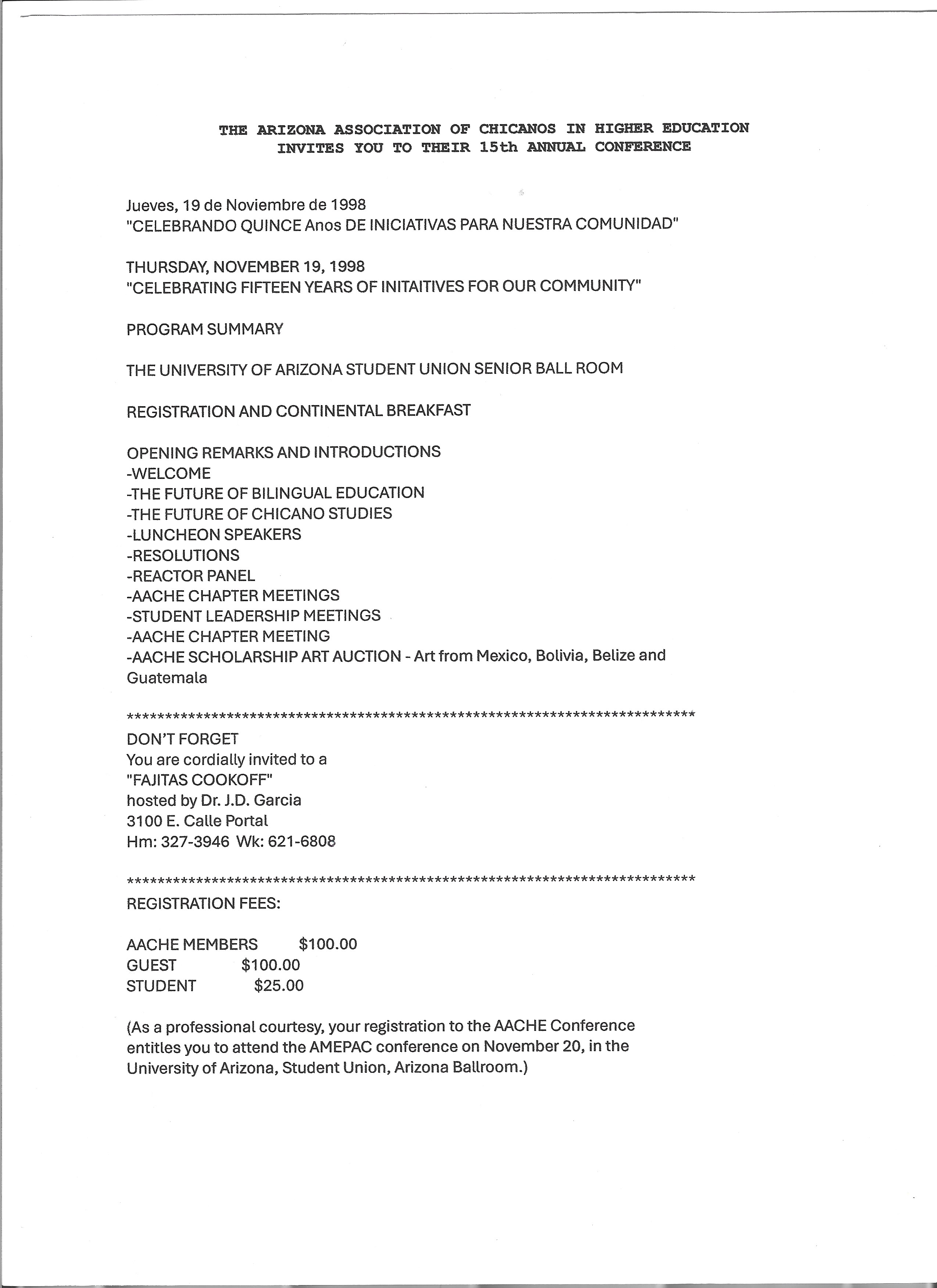 AACHE Conference invitation 1998